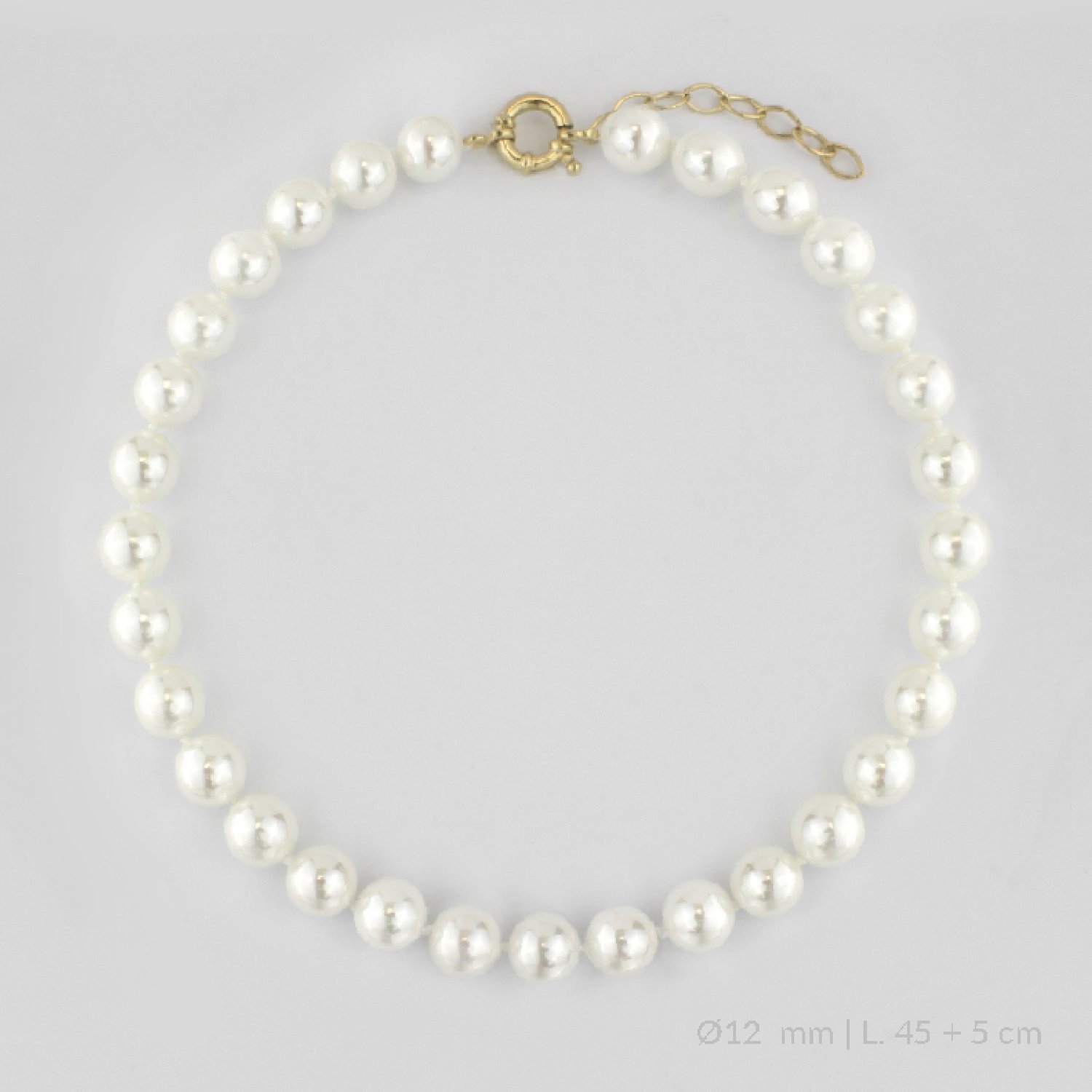 Fabricado con materiales de alta calidad, el collar de perlas con acabado dorado garantiza durabilidad sin perder su delicadeza. Las perlas se presentan en un tamaño uniforme, mientras que el acabado dorado añade un toque contemporáneo, ideal para quienes buscan algo especial pero adaptado a cualquier ocasión. Este diseño versátil hace que sea tu elección perfecta para eventos especiales o para el día a día.