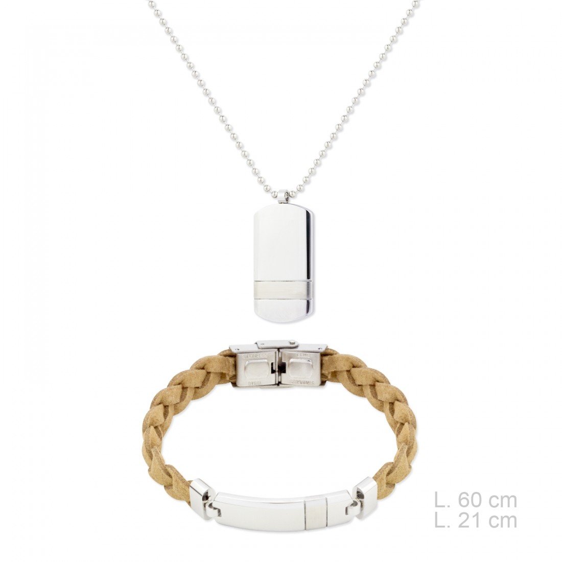 Longitud de la pulsera: 21 cm. Longitud de la gargantilla: 60 cm (no incluye cadena de extensión).