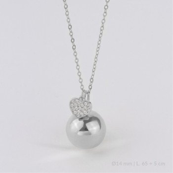 Llamador de ángel de Plata de Ley y charm con forma de corazón con circonitas. El llamador de ángel ayuda a calmar al bebé y a crear un vínculo muy especial entre él y la futura mamá. Se lleva a partir del cuarto mes, cuando el bebé desarrolla su audición y podrá escuchar la melodía del llamador. Es un símbolo de protección y calma.