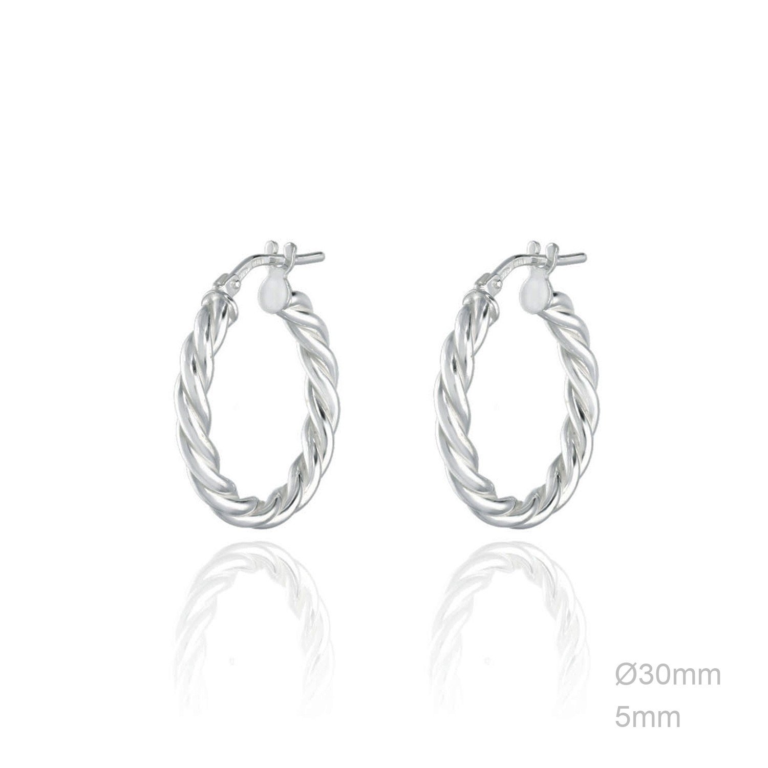 Pendientes de plata de ley Aro tubo rizado 20 y 30 mm