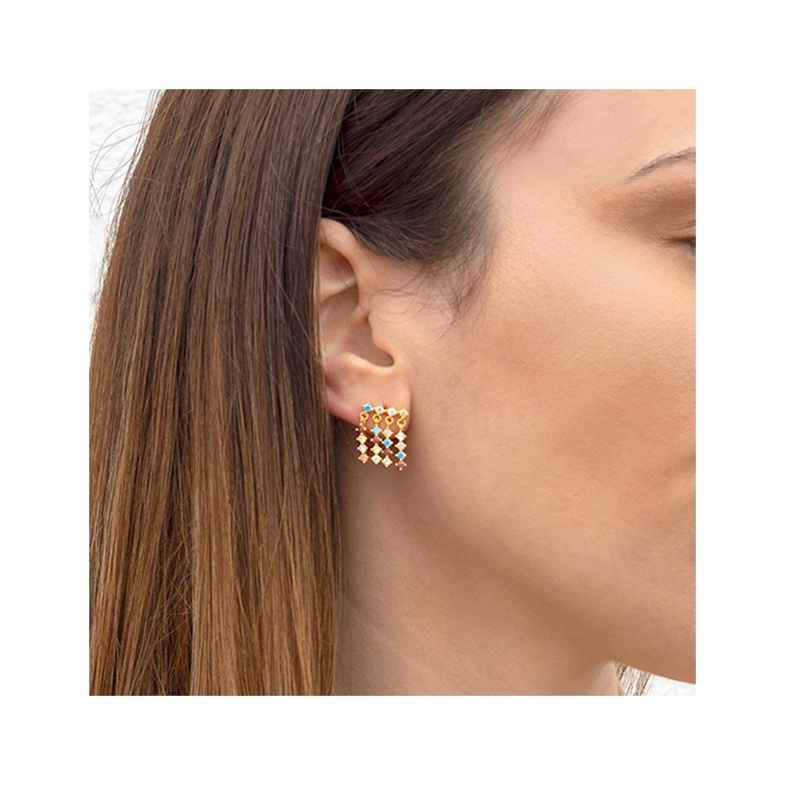 Pendientes Plata de Ley chapados en oro con circonitas de color de 2 mm.