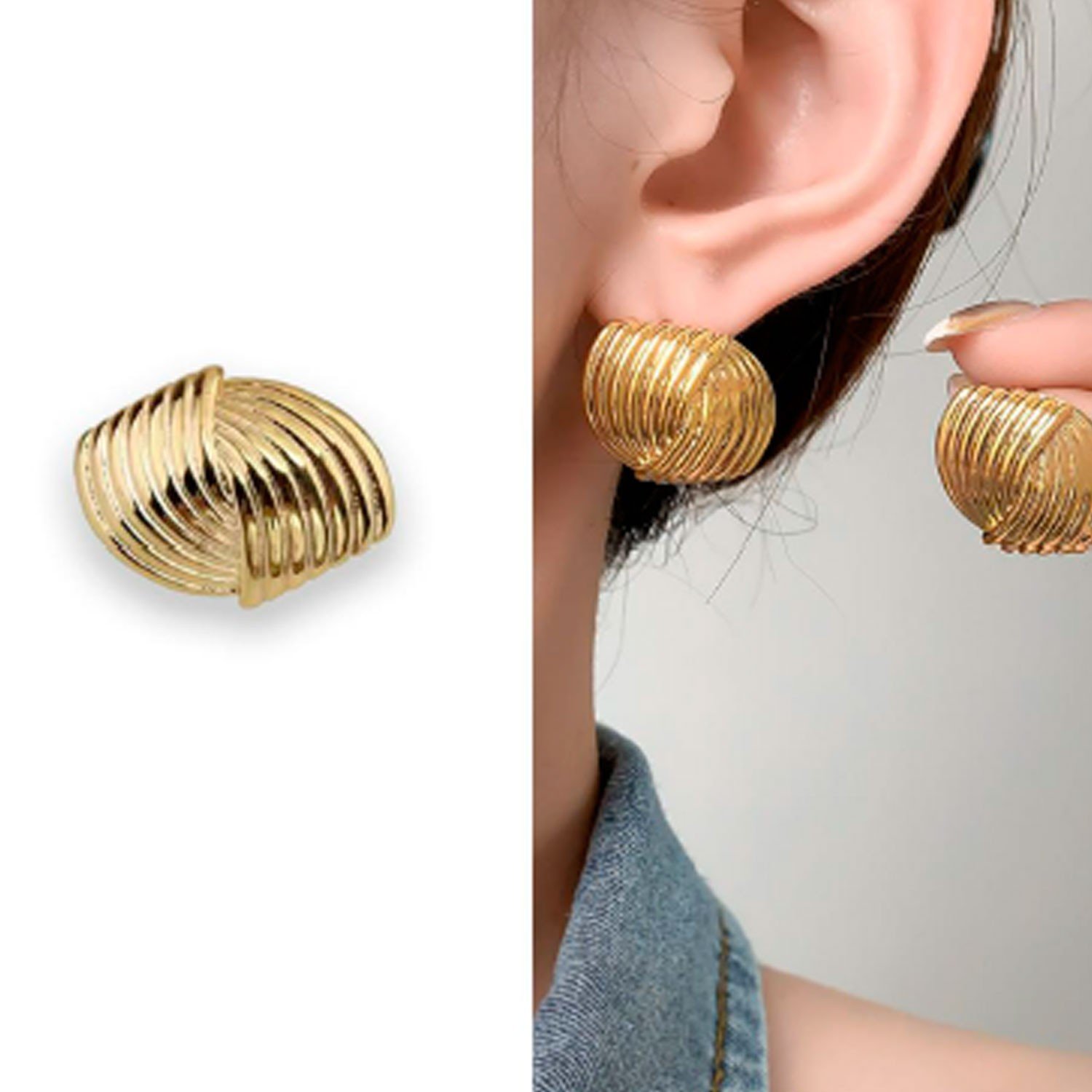 Fabricados con latón de alta calidad recubierto con una capa de oro, estos pendientes ofrecen una resistencia excepcional al desgaste, garantizando una larga vida útil. El proceso de chapado asegura un brillo deslumbrante y una textura suave que no solo es agradable a la vista, sino también al tacto. Su diseño moderno y atemporal los convierte en un accesorio imprescindible para cualquier guardarropa.