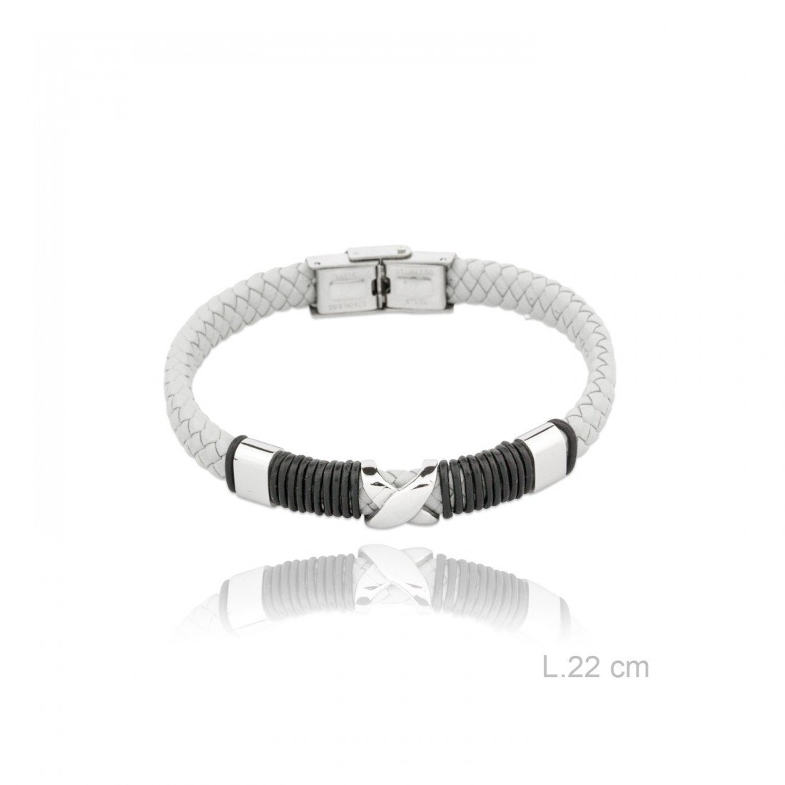 Pulsera Acero Cuero Trenzado «X» Blanca