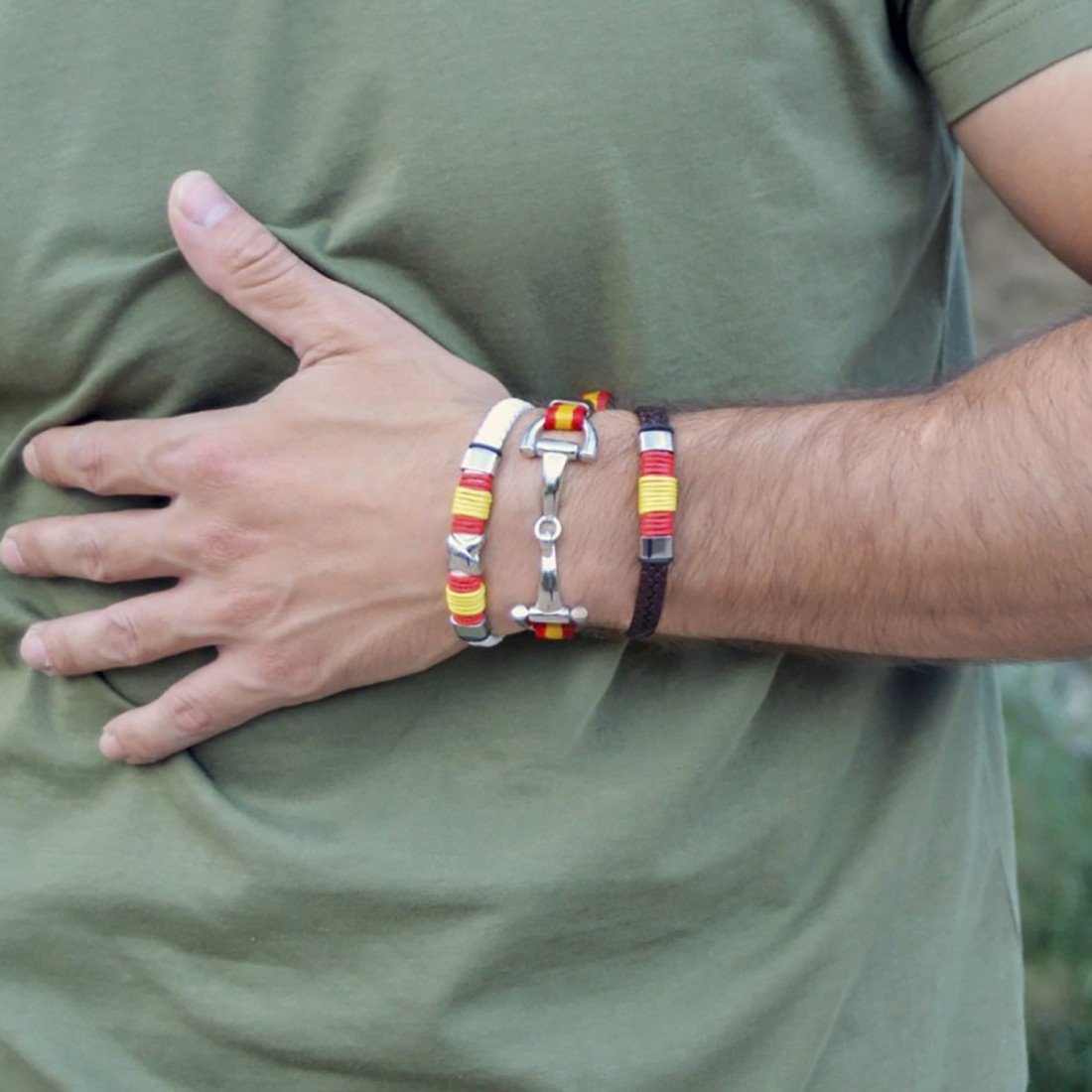 Aporta un toque de autenticidad y estilo a tu vestuario y muestra tu amor por España con esta pulsera de diseño exclusivo. Atrévete a incluirla en tu colección de accesorios y marca la diferencia.