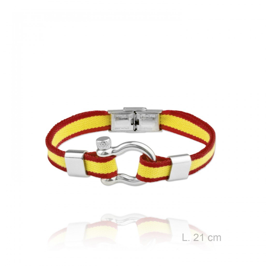 La pulsera de acero con bandera en tela de algodón ESPAÑA es el accesorio perfecto para quienes desean expresar su orgullo nacional con estilo. Elaborada con acero inoxidable resistente, esta pieza garantiza durabilidad y un aspecto impecable, incluso con el uso diario. La bandera española, representada en tela de algodón de alta calidad, añade un toque distintivo que combina sofisticación y personalidad.