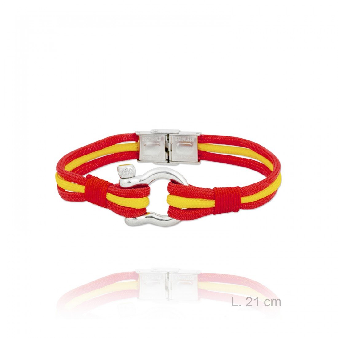 El simbolismo detrás de la Pulsera de acero con cabo náutico rojo/amarillo ESPAÑA la convierte en un regalo ideal para aquellos que valoran las tradiciones españolas y la conexión con el mar. Añádela a tu colección hoy y lleva contigo un pedazo de historia y estilo que nunca pasa de moda.